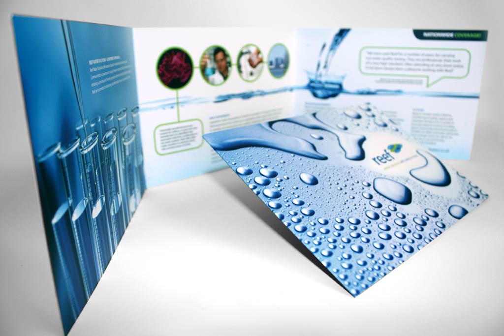 We were asked by Reef Water Solutions to design a new corporate brochure in order for them to compete with their competition. By sourcing various water themed photography, corporate colourings and also a using a roll-fold finish, we managed not only to create an eye-catching product but also a very cost-effective brochure which has served them well over the years.
